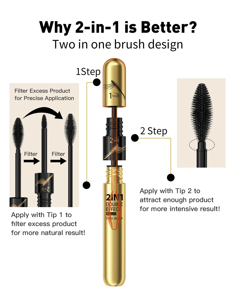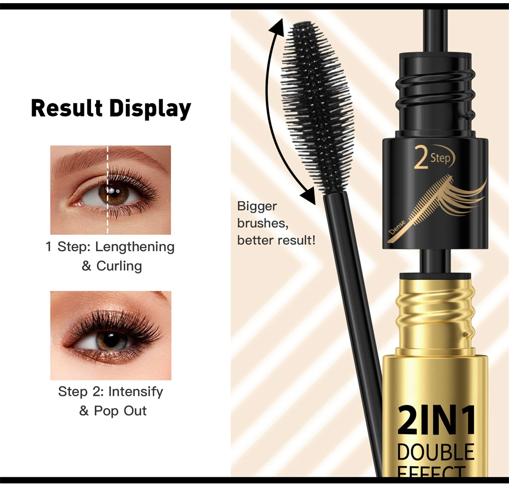 Product Name | Professional Cosmetics Mascara Waterproof base 2 In 1 Natural Eyelash Mascara Thick Curling 4D Double Head Mascara |